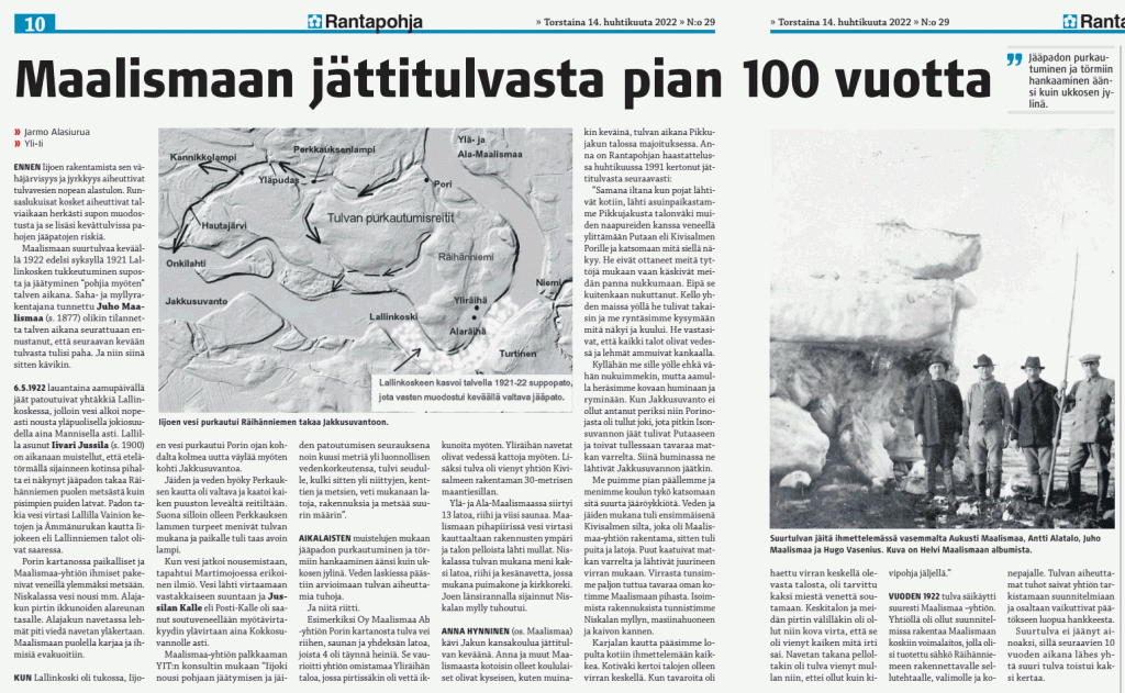 Rantapohja 14.4.2022 – Maalismaan jättitulvasta pian 100 vuotta