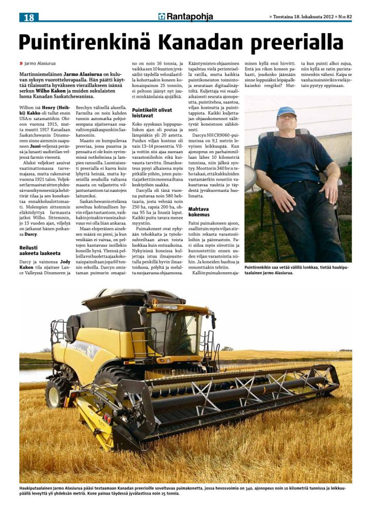 Rantapohja 18.10.2024 – Puintirenkinä Kanadan preerialla