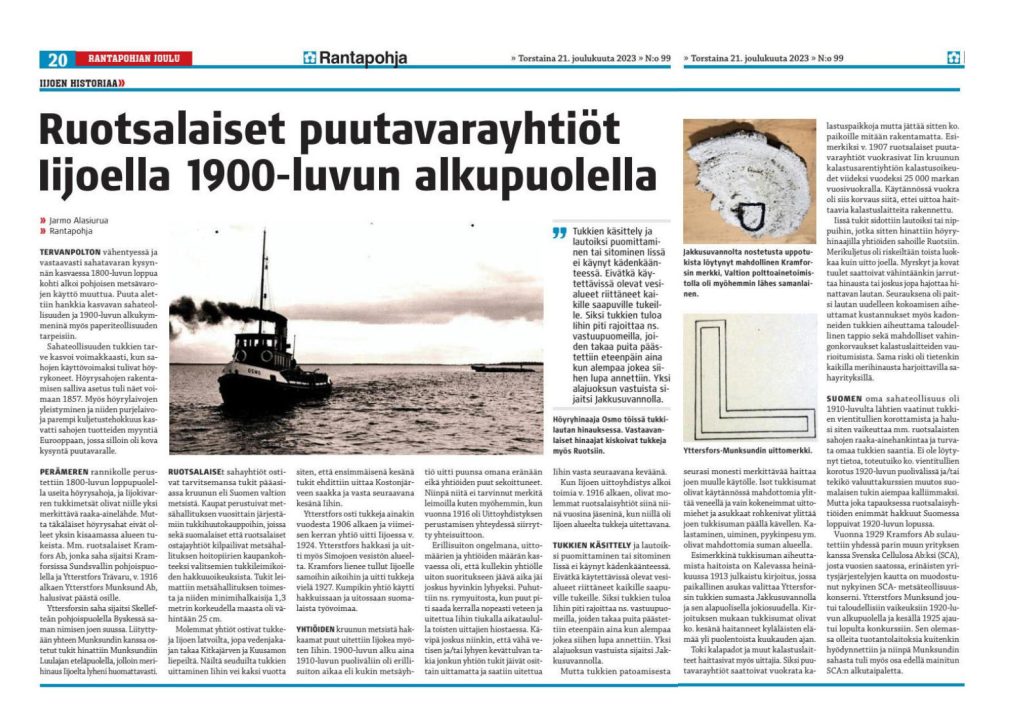 Rantapohja 21.12.2023 – Ruotsalaiset puutavarayhtiöt Iijoella 1900-luvun alkupuolella