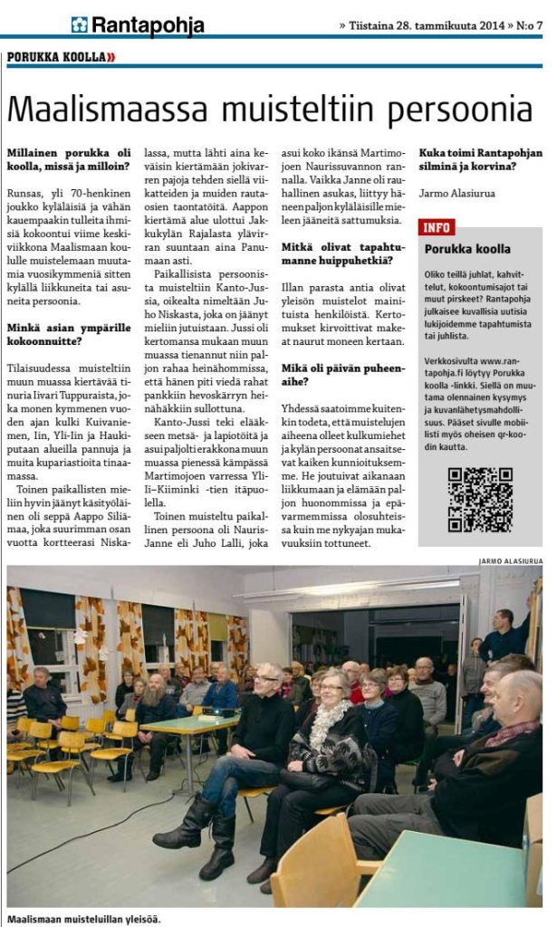 Rantapohja 28.1.2014 – Maalismaassa muisteltiin persoonia