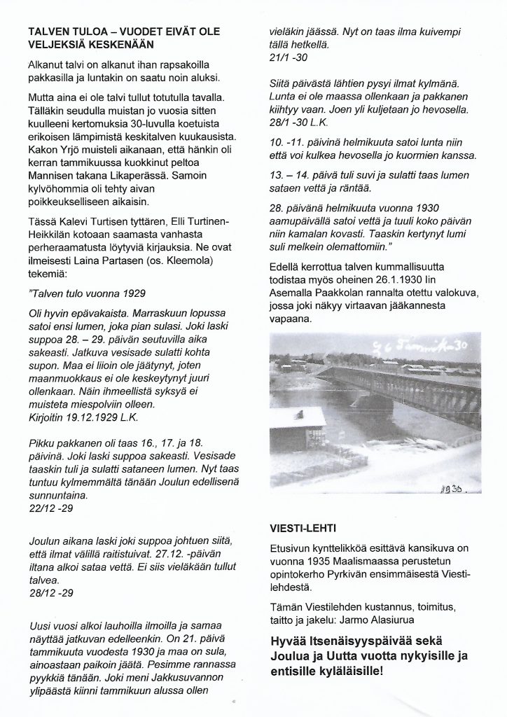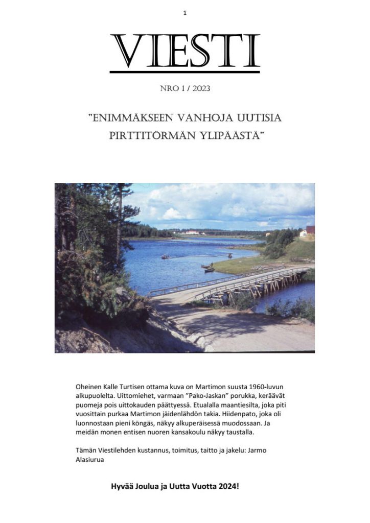 Tässä vielä omaksi iloksi (ja kyläläisten kiusaksi) julkaisemiani Viesti-lehtiä. Lehden kirjoitin, tulostin ja jakelin Lallin ja Nauruaojan väliselle alueelle yleensä Itsenäisyyspäivän aikaan.